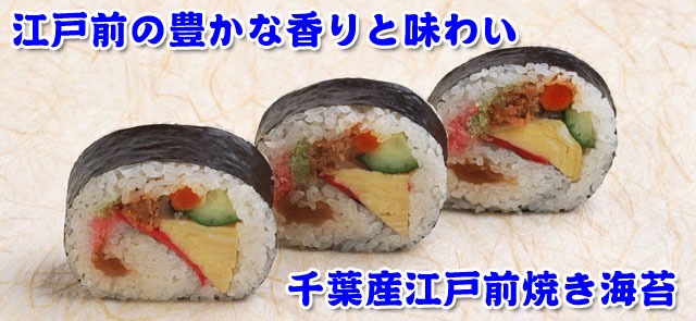 千葉県産の海苔を当社の工場にて丹念に焼き上げました。