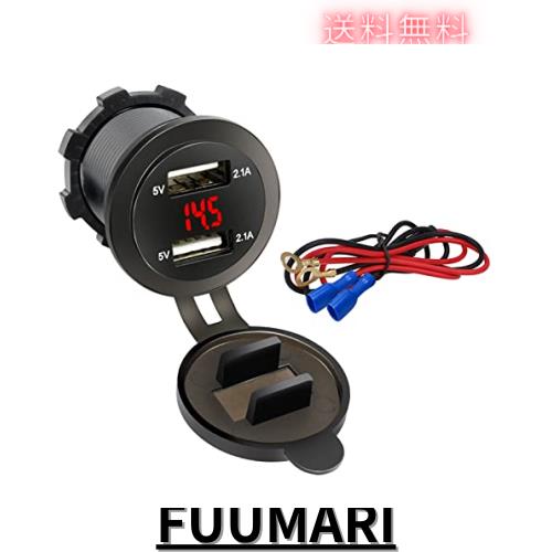 Palumma バイク用 チャージャー USB充電器ソケット 埋め込み用 急速充電 USB 2ポート 車載充電器 12V / 24VデュアルUSB車載電源コンセント、防水、LED電圧計付きシガーライター