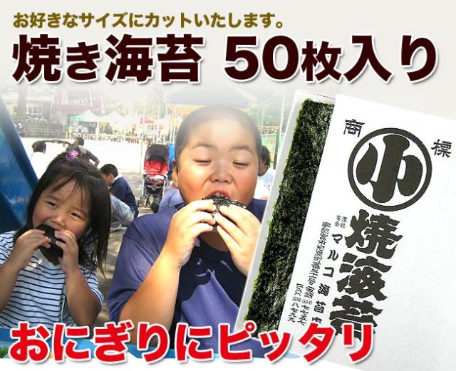 ご希望により、使い易いようにカットいたします。 焼き海苔 50枚入り