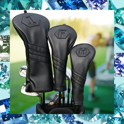 ゴルフヘッドカバー 3点セット(1FUT) ゴルフウッドカバーセット ゴルフドライバーカバー フェアウェイウッド ユーティリティ用 ブラッ
