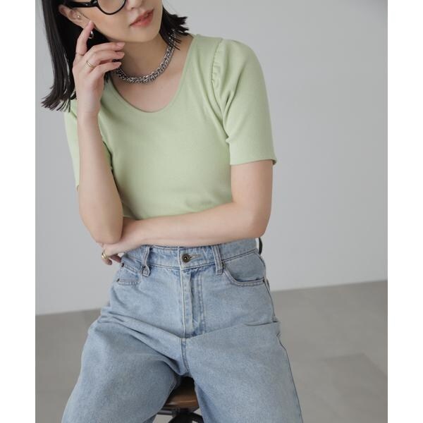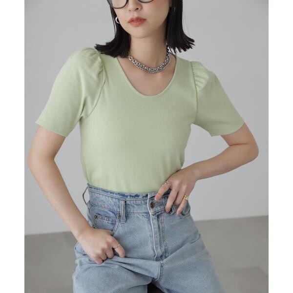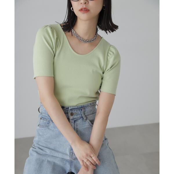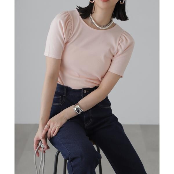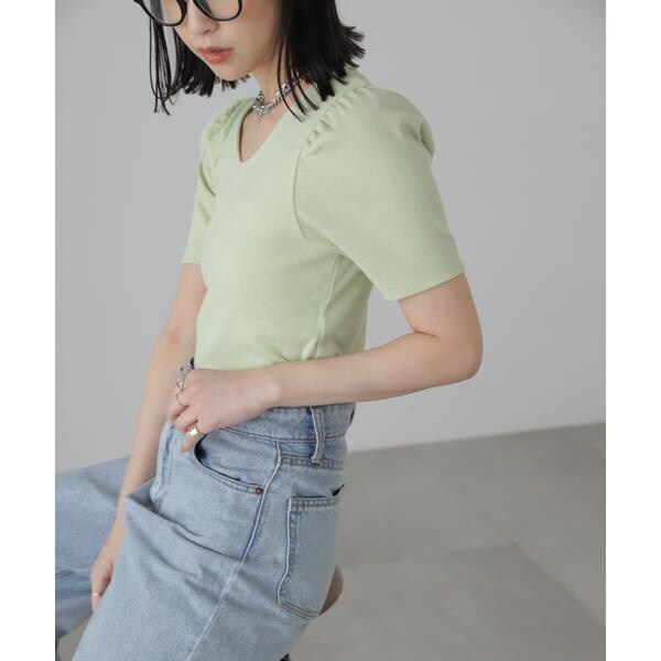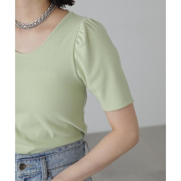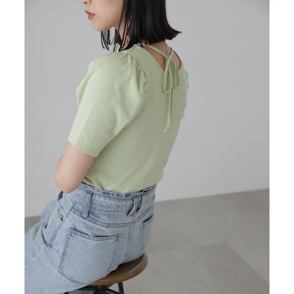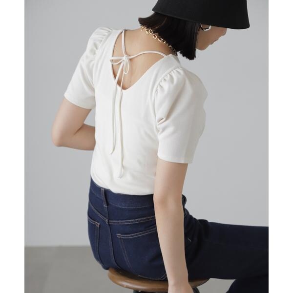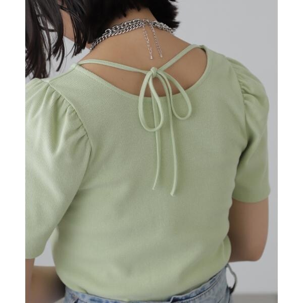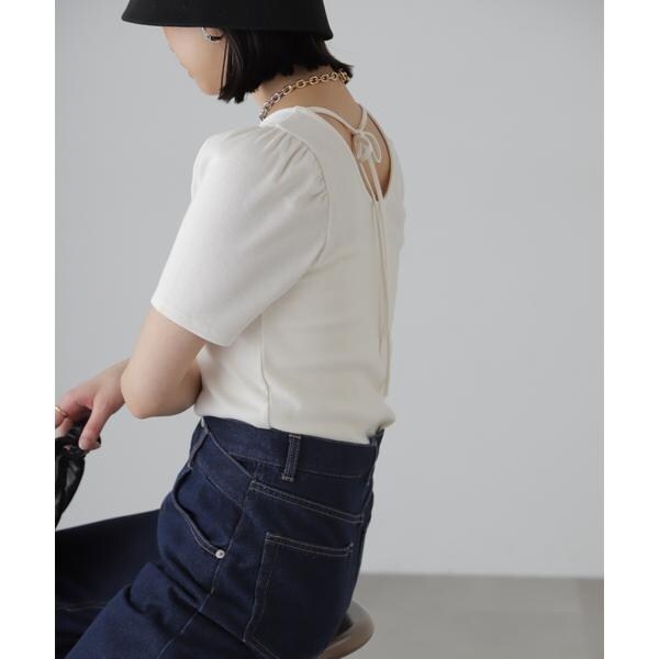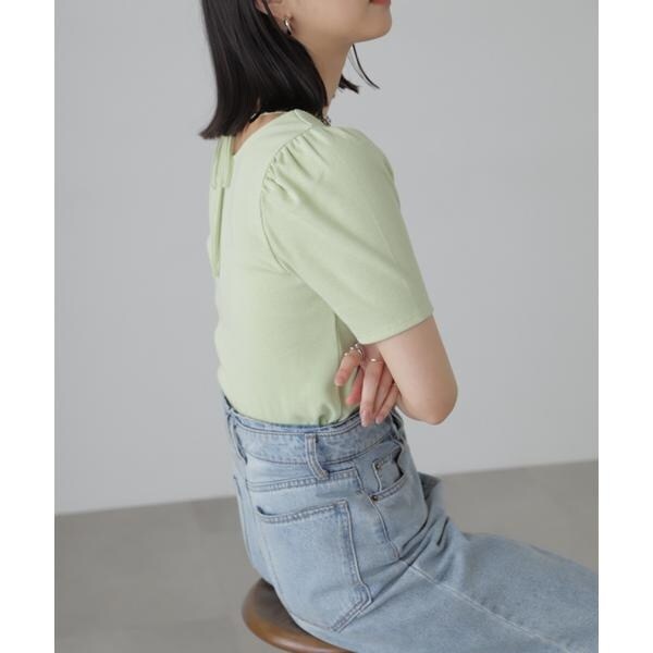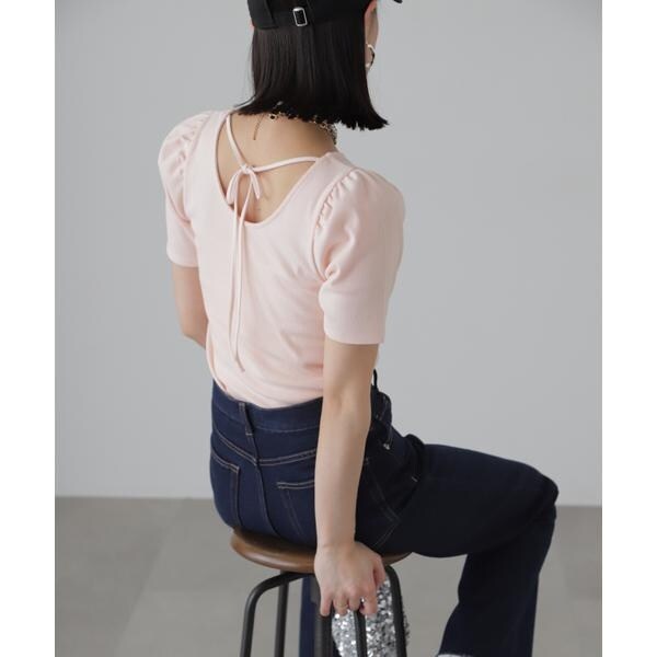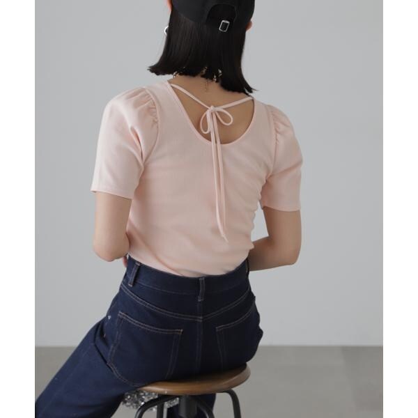 フリーズマート(Free’s Mart)/バックリボンパフスリーブテレコカットソー