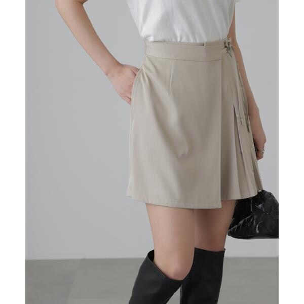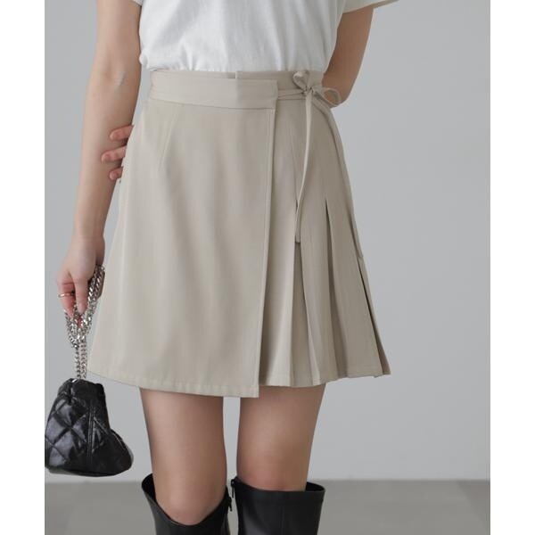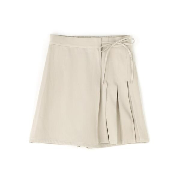 ラップデザインが可愛らしいスカパンです。中はパンツ仕様なので安定してはけるデザインです。ウエストはリボン付きなので、トップスINしてウエストデザインを見せるのもおすすめ。スカート自体にデザイン性があるので、シンプルなトップス合わせでコーデが決まります。ポリエステル素材を使用。少しカジュアルな雰囲気でキレイになり過ぎないところもポイントです。※モデルの着用画像の場合、光の当たり具合により、実際の色味と異なって見えることがございます。色味は、商品単体の画像をご参照ください。