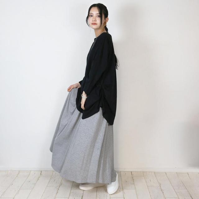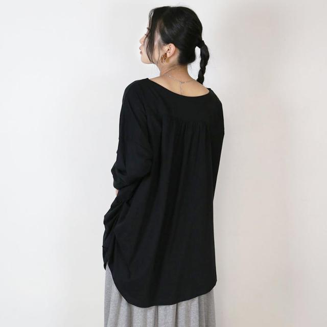 アシメトリー裾タックTシャツ