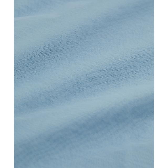Aラインでボクシーシルエットなので、ボトムスはIラインのものがスタイルアップでおすすめ。ワイドパンツやスカートもIラインシルエットであればボリューム感のあるアイテムを持ってきてもかわいいです。ふんわりエアリーなデザインなのでボトムスにはカジュアルなワイドパンツがおしゃれです