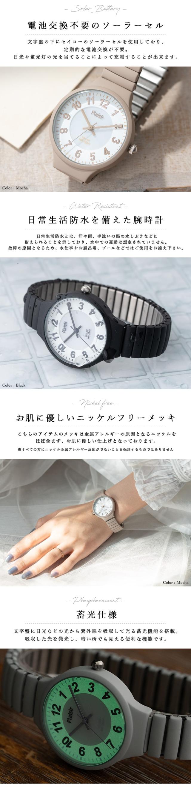 腕時計 レディース ソーラー ジャバラ ウォッチ 蓄光文字盤 3気圧防水 蛇腹 ベルト ブランド ニッケルフリー 金属アレルギー かわいい おしゃれ 大人 20代 30代 40代 ブランド 綺麗 見やすい 名入れ可 1年間のメーカー保証付 プレゼント ギフト