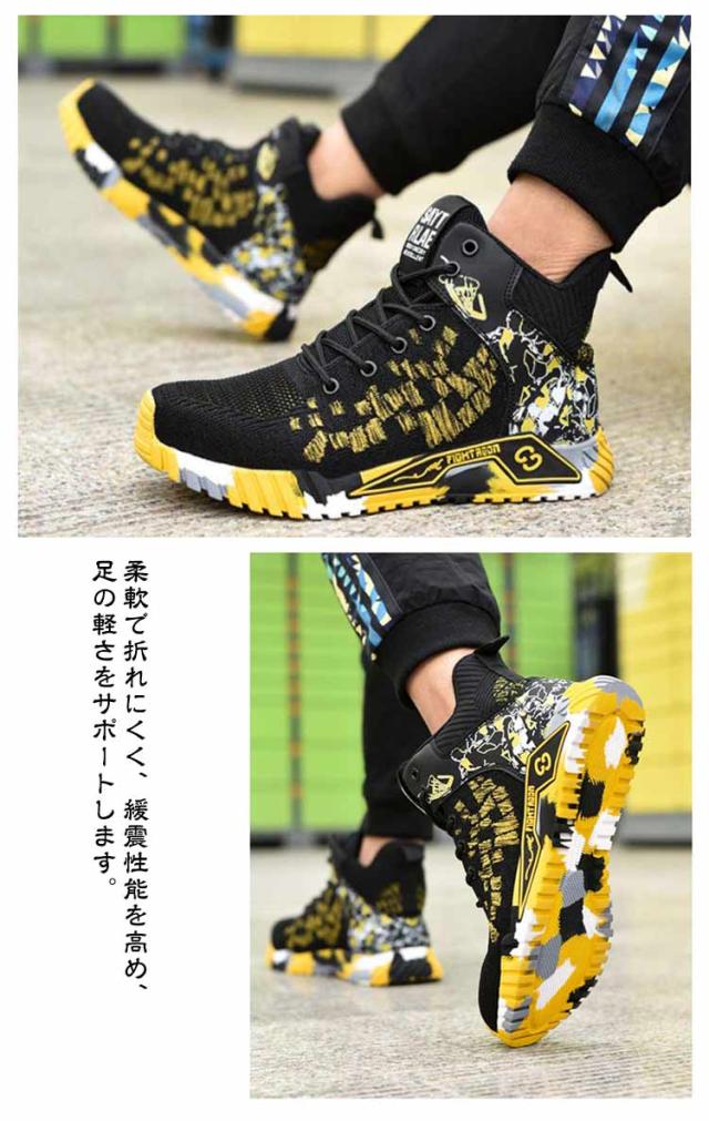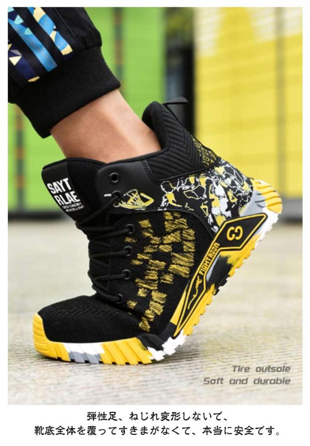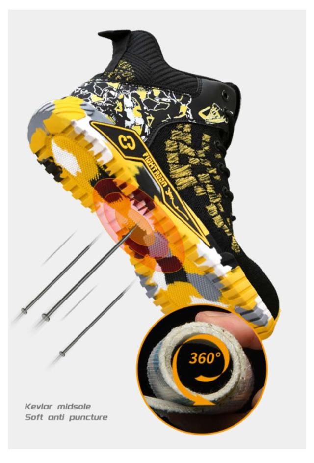 | 大人気の全方位の安全靴スニーカーの登場。 軍靴クラスの防刺能力で各種の鋭い物体を防ぐことができます。 つま先部分に鋼製の先芯を入れた、金槌や刃物などからつま先を保護できます。 弾性足、ねじれ変形しないで、靴底全体を覆ってすきまがなくて、本当に安全です。 通気性に特化して作られた生地は、汗の排出が早く、足が臭くなりにくいのが強みです。 柔軟で折れにくく、緩震性能を高め、足の軽さをサポートします。 裏地は通気生地は柔らかく快適で足が磨りません。 製造工場、現場工事、アウトドアなど様々な場合に活躍します。 | |