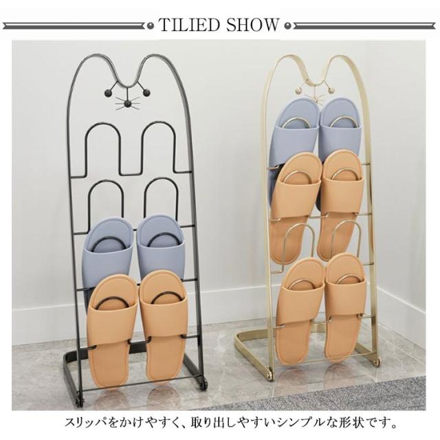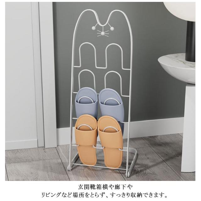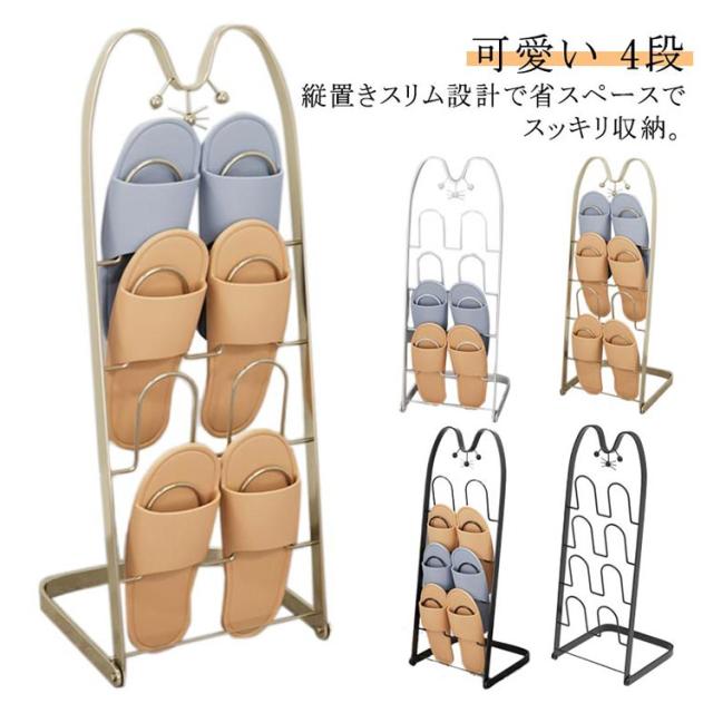 スリッパラック 4足 スリッパ収納 縦型 スリム スリッパスタンド スリッパ立て スリッパホルダー 4段 可愛い 猫型 ルームシューズラック スリッパ入れ スリッパ掛け スリッパ収納 玄関収納 靴箱 来客用 スチール製 コンパクト