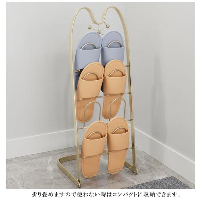 | 縦置きスリム設計で省スペースでスッキリ収納。 スリッパをかけやすく、取り出しやすいシンプルな形状です。 スリッパは、最大4足まで収納可能です。 玄関靴箱横や廊下やリビングなど場所をとらず、すっきり収納できます。 しっかりした安定感で、使いやすさと機能性を重視したスリッパラック。 折り畳めますので使わない時はコンパクトに収納できます。 | |