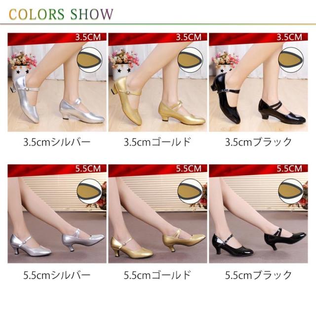 | ヒール3.5cmタイプとヒール5.5cmタイプが選べる!モダン、ラテン兼用社交ダンスシューズ。 耐摩耗性があるし、通気性に富むし、快適な履き心地です。 柔らかくて通気性がよい高品質素材を使用しております。 ゴム/スエードの底なので硬さも程よくて適度な滑る安さで動きやすいです。 ダンス練習用、パーティなどにぴったりなダンスシューズです。 | |