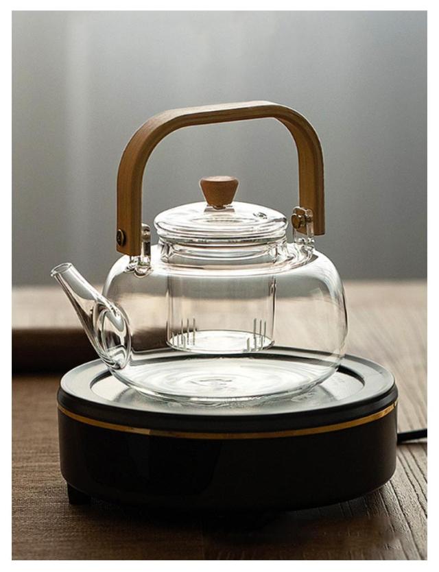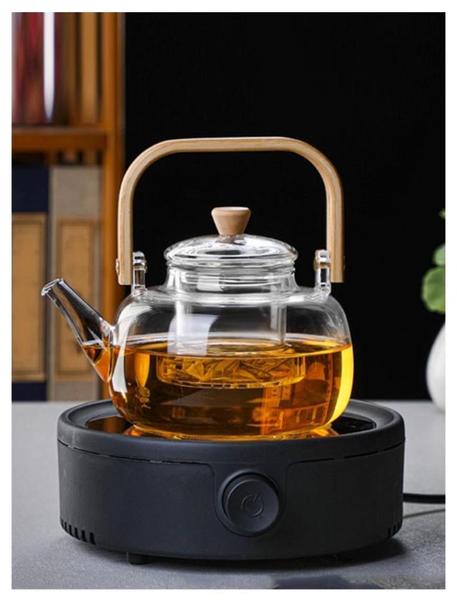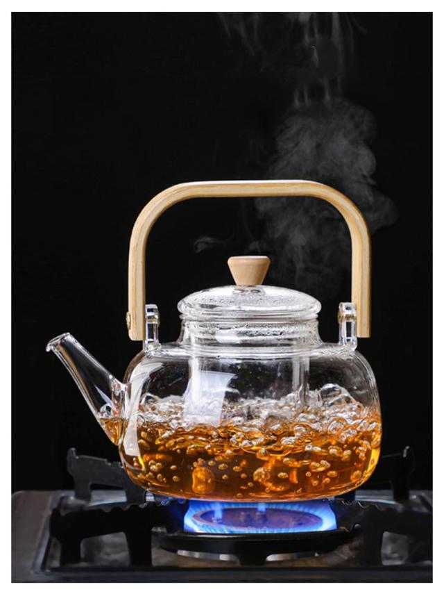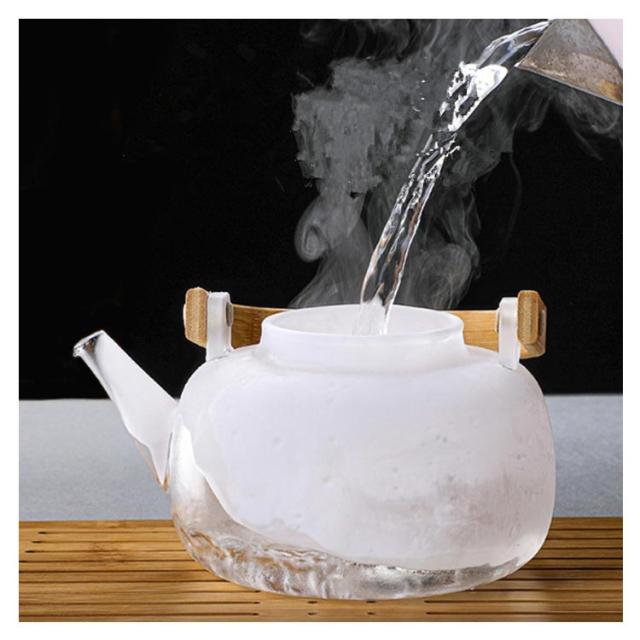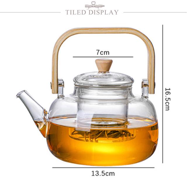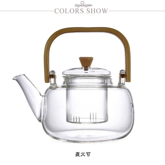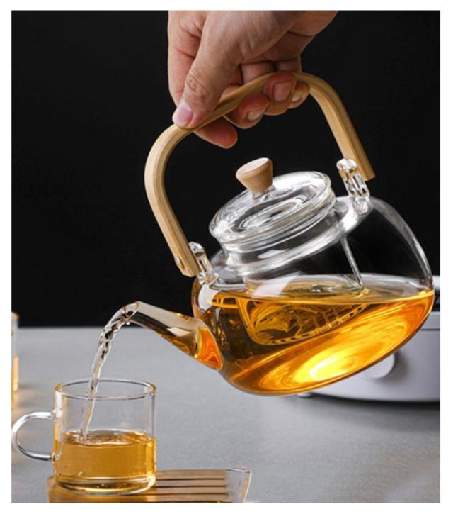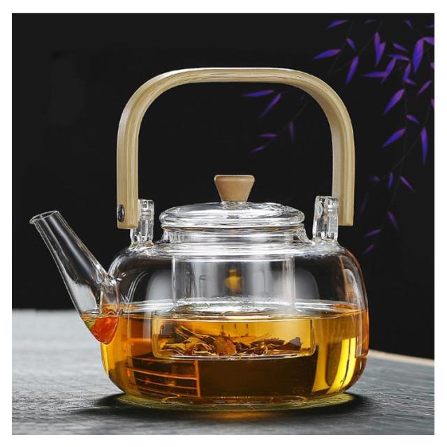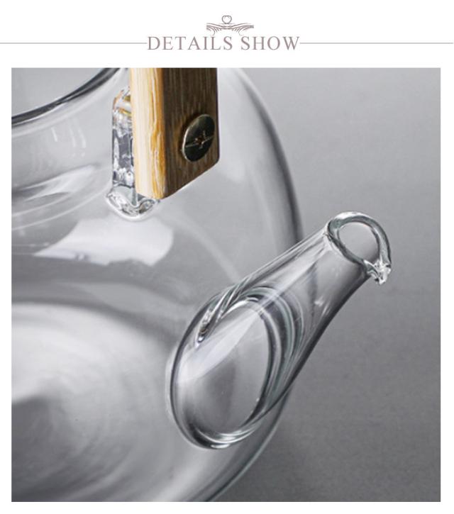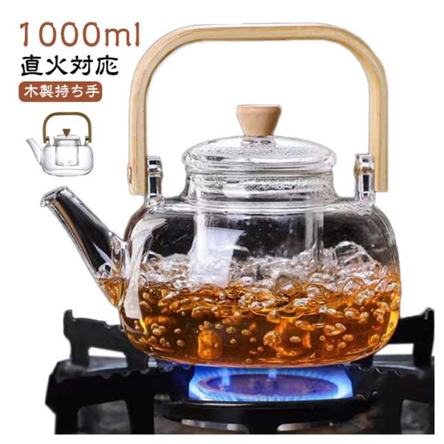 フルーツティー 茶こし付き 木製持ち手 ジャンピング 耐熱ガラス ガラス製ポット 1000ml ガラス急須 耐熱ガラス 紅茶ポット ガラスやかん 花茶 工芸茶 ハーフティー に ガラス急須
