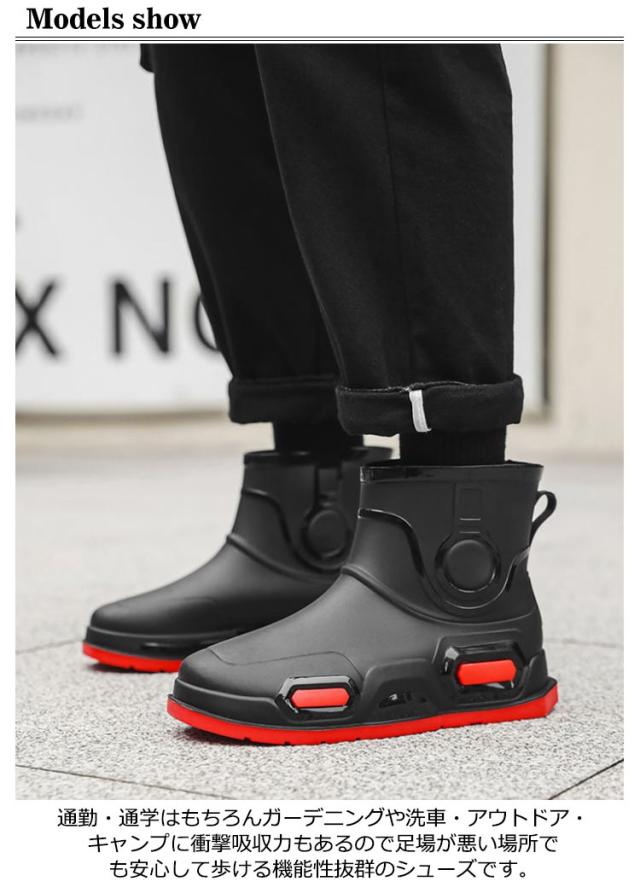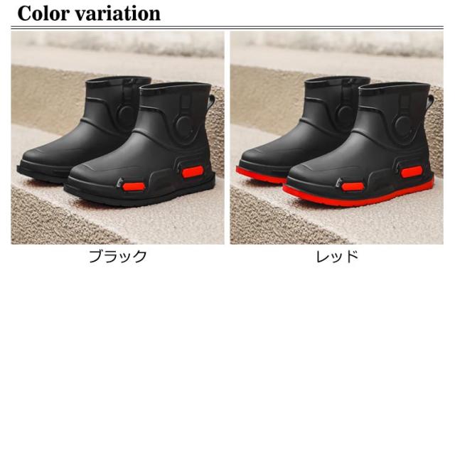 | 雨の日の外出が億劫でなくなり靴下が濡れて不快な思いが無くなります。 通勤・通学はもちろんガーデニングや洗車・アウトドア・キャンプに衝撃吸収力もあるので 足場が悪い場所でも安心して歩ける機能性抜群のシューズです。 ■耐磨・滑り止め ソールには耐磨耗性素材を使用ので、滑り止め効果と耐久性があります。 一般的なレインブーツに比べて軽量なので、長時間履いても疲れにくくなっています。 ■こだわりのグリップ・ソール 滑りにくいパターンを採用したラバーソールは足元が悪い雨天の味方。 ■サッと履けてストレスフリー 片手だけでサッと履けて、準備はあっという間。 雨の日も、出かける前の一瞬を無駄にしません | |