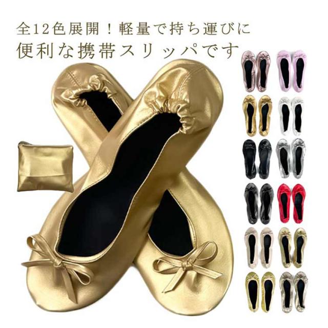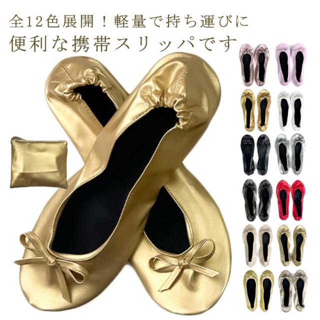 上履き バレエシューズ レディース 携帯スリッパ 携帯シューズ 柔らか 婦人靴 収納袋付き ポータブル 折りたたみ ぺたんこ フラット スリッポン パンプス 学校行事 参観日 軽量 携帯シューズ お洒落