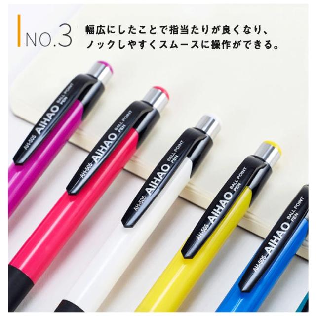 | 日々の生活で気軽に使用できるワンランク上のボールペン。 ボール径0.7MMなので、さらさらとしたなめらかな書き味です。 滑りにくい軸は握り心地が良く、書きやすく手が疲れにくい特徴があります。 幅広にしたことで指当たりが良くなり、ノックしやすくスムースに操作ができる。 筆芯を替える時、取り外すと組み立ては簡単です。 普段使いにはもちろん、ちょっとしたプレゼントにもぴったりのアイテムです。 | |