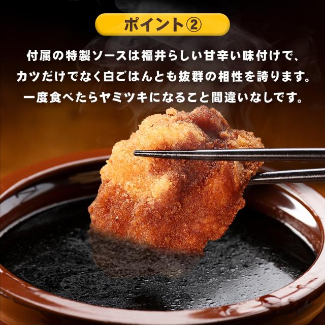 付属の特製ソースは福井らしい甘辛い味で、白ごはんとも抜群の相性を誇り、一度食べたらヤミツキになること間違いありません。
