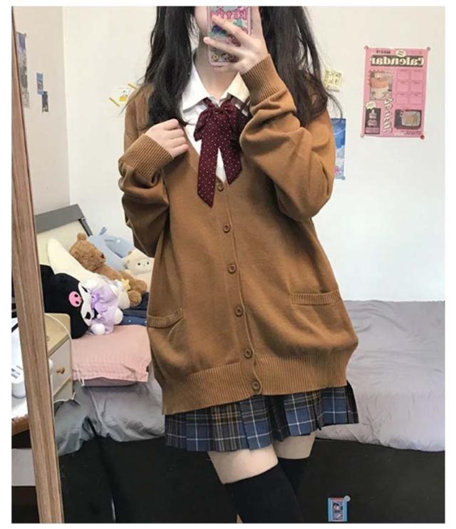 羽織り JK制服 スクールカーディガン 無地 学生服 Vネック カーディガン ゆったり オールシーズン 制服 学校 高校生 中学生 通学 入学 コスプレ イベント 大きいサイズ 送料無料