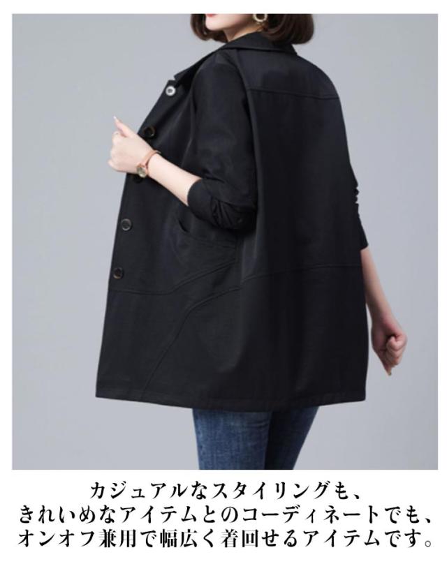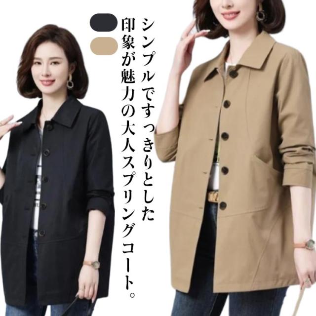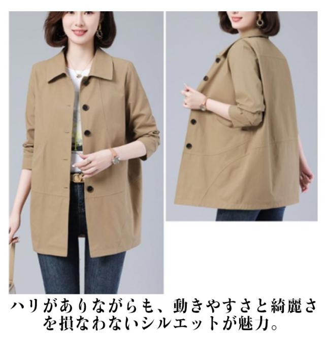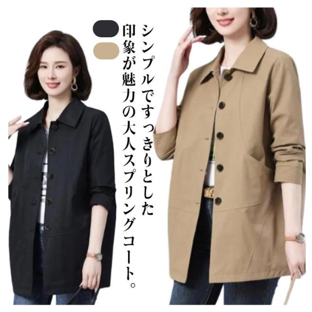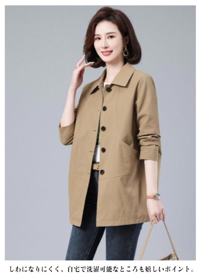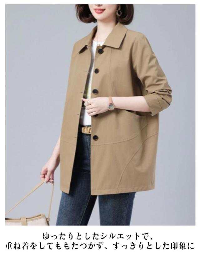 ステンカラーコート スプリングコート コート ゆったり アウター レディース ミディアム丈 トレンチコート 折り襟 裏地あり ステンカラーコート オフィス 春 カジュアル キレイめ 春服