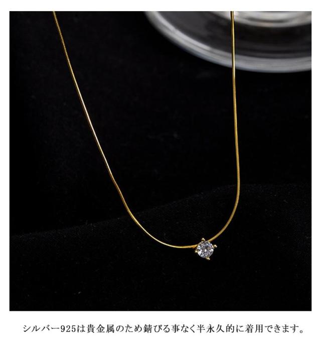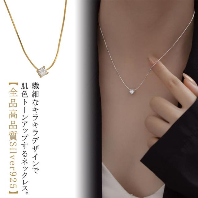 ジルコニア 【全品高品質Silver925】 一粒 定番 ネックレス レディース ダイヤモンド シルバー925 ゴールド プラチナ 色 アズキ チェーン キラキラ シンプル 【全品高品質Silver925】 人気 ジュエリー オフィス 普段使い おしゃれ 高見え