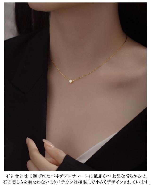 | 繊細なキラキラデザインで肌色トーンアップするネックレス。 ハイエンドなカッティングを施した輝きで胸元をドラマチックに演出します。 石に合わせて選ばれたベネチアンチェーンは繊細かつ上品な滑らかさで、石の美しさを損なわないようバチカンは極限まで小さくデザインされています。 シルバー925は貴金属のため錆びる事なく半永久的に着用できます。 チェーン留め具には5cmのゆとりがあり長さ調節が可能です。 「毎日使える」を追及したSilver925製のジルコニアネックレス。 | |