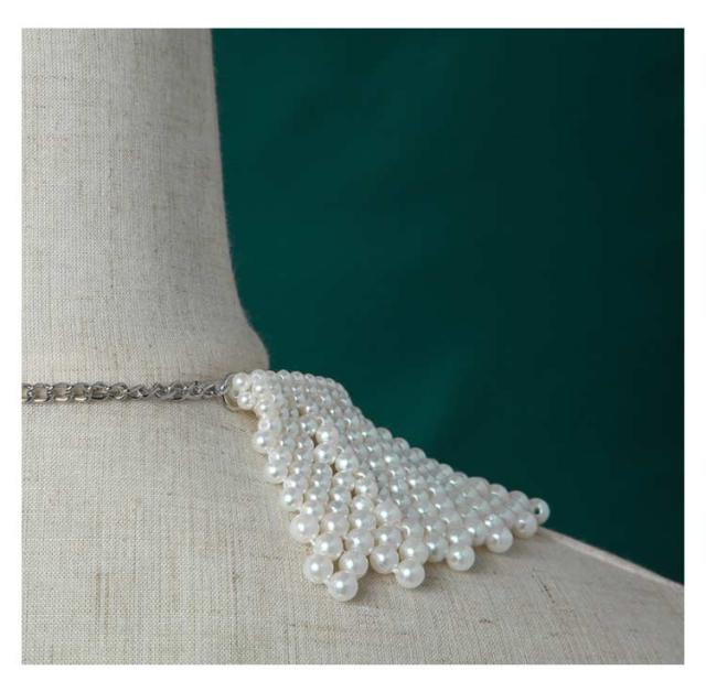 【送料無料】ネックレス つけ襟 パール スカラップ 小粒パール パール 華やか 大きめ襟 おしゃれ お洒落 【送料無料】ネックレス かわいい 付け襟 きれいめ トレンド 綺麗め アジャスター 可愛い お出かけ お呼ばれ