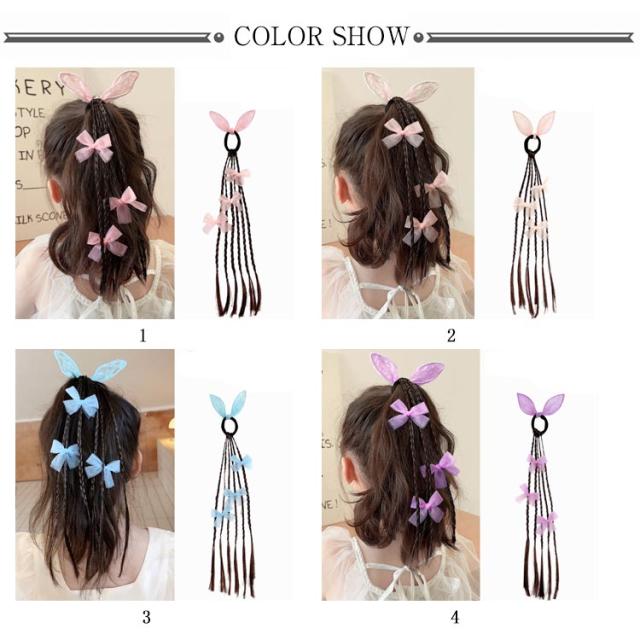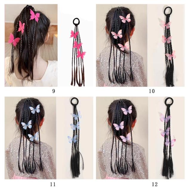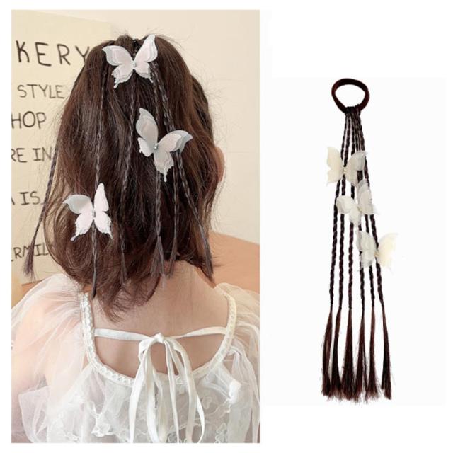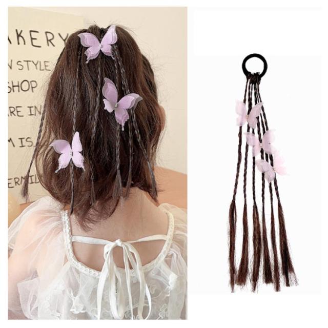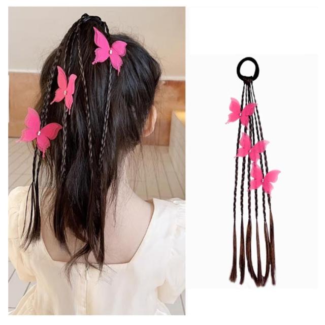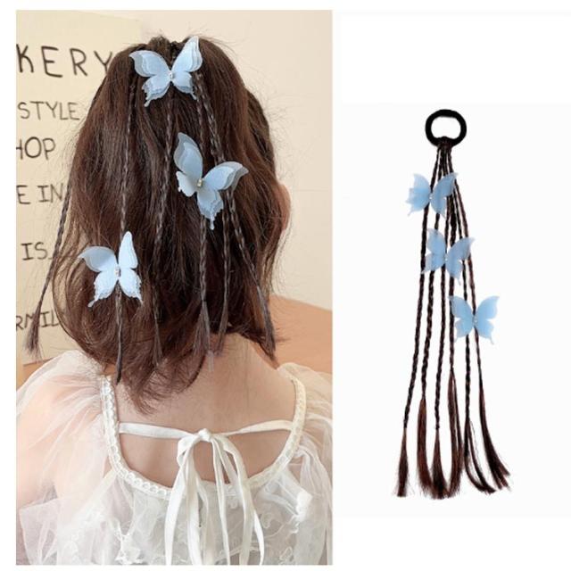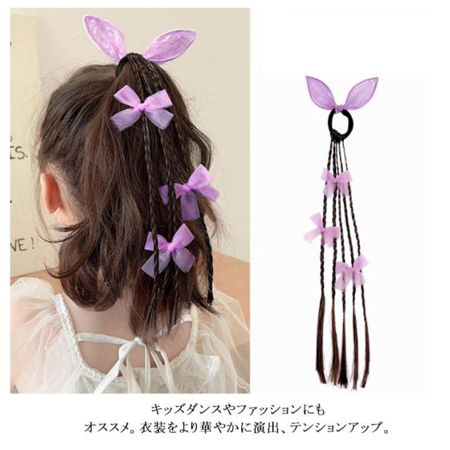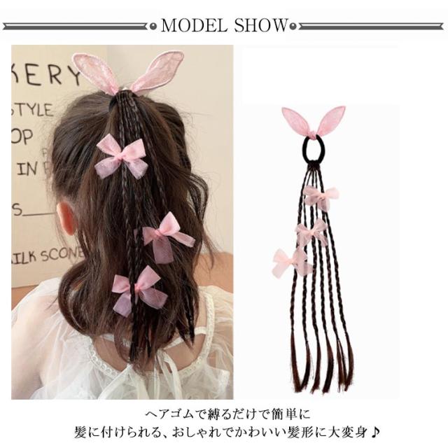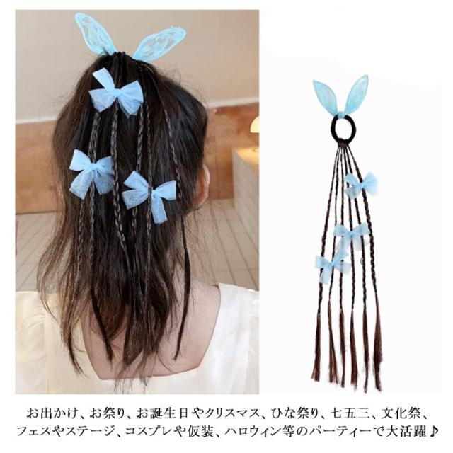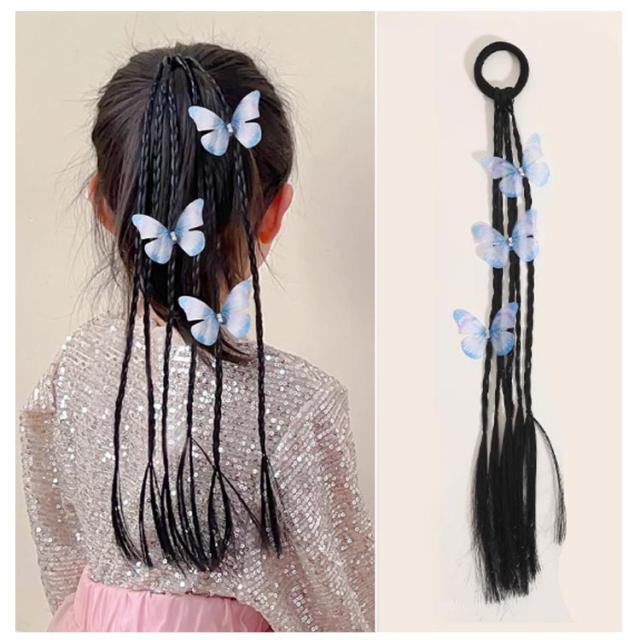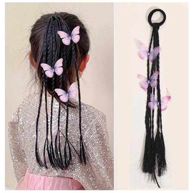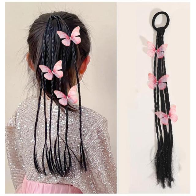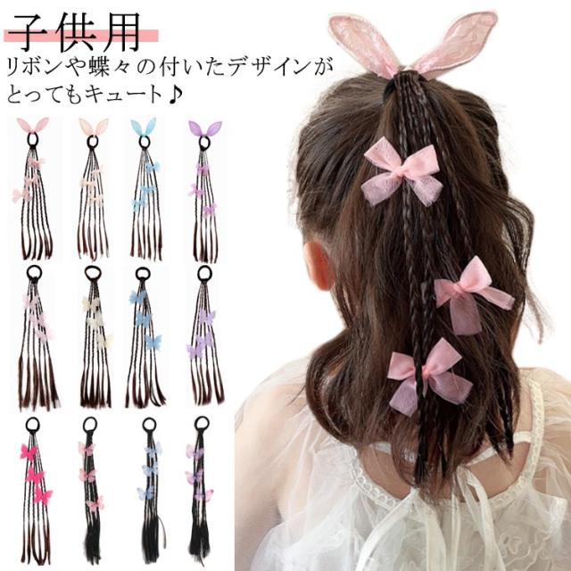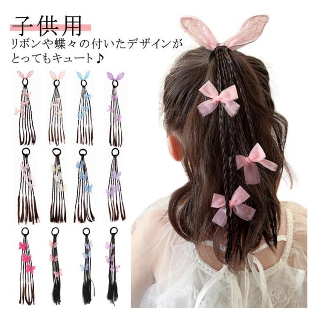 キッズ 子供用 ウィッグ ヘアゴム エクステ ゴム付き 編み込み 三つ編み キッズ 髪留め ひな祭り 可愛い蝶やリボン付き 七五三 ヘアエクステ ヘアアクセサリー キッズダンス衣装 エクステ 送料無料 ウィッグ ポニーテール キッズ
