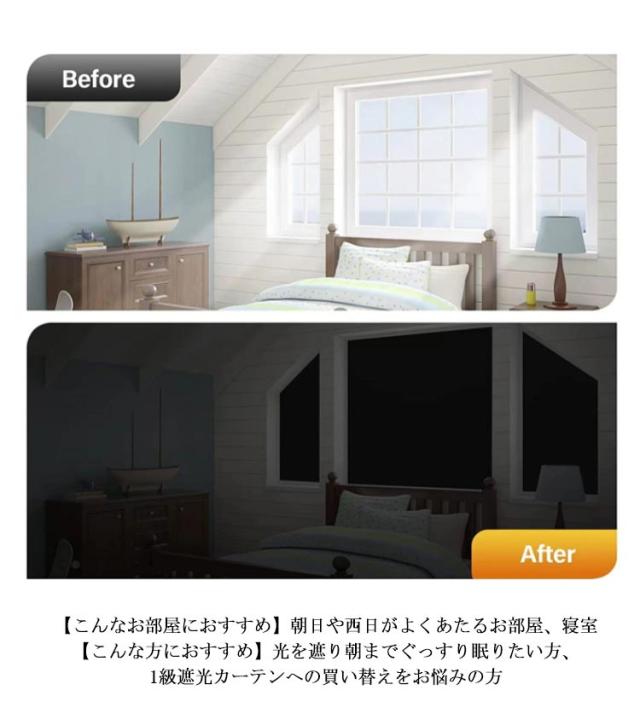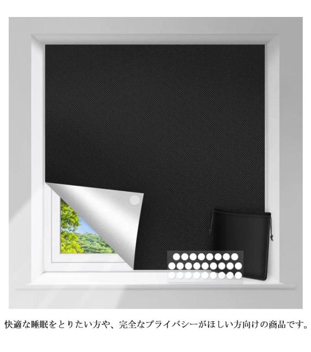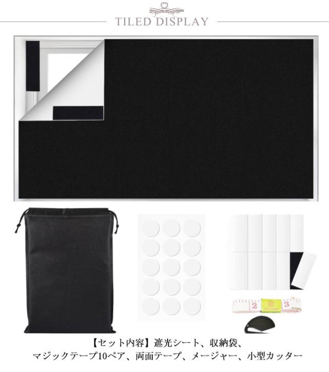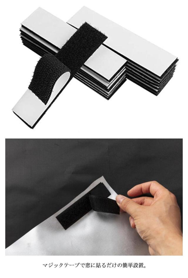 | サイズについての説明 | 【セット内容】遮光シート、収納袋、マジックテープ10ペア、両面テープ、メージャー、小型カッター 【サイズ】150×100cm ※上記サイズは平置き実寸になります。 サイズ表の実寸法は商品によって1-3cm程度の誤差がある場合がございます。 |