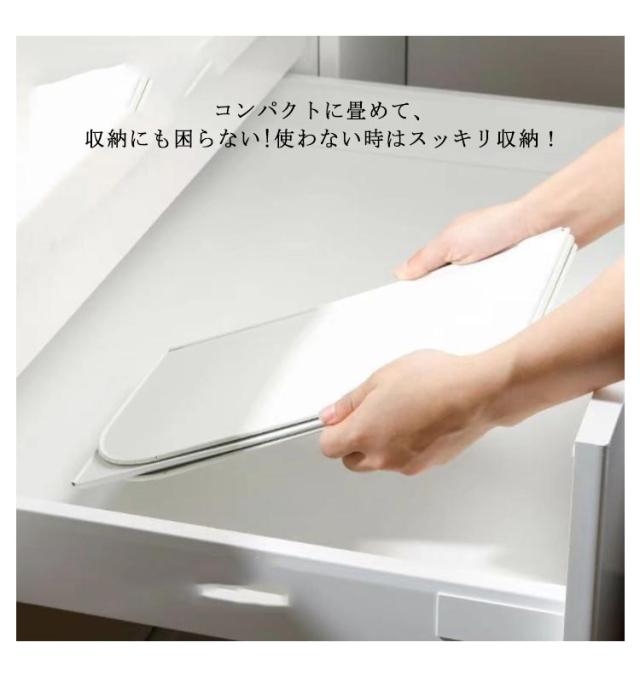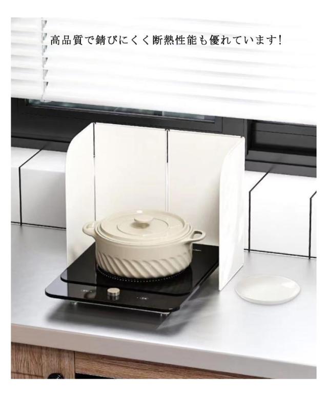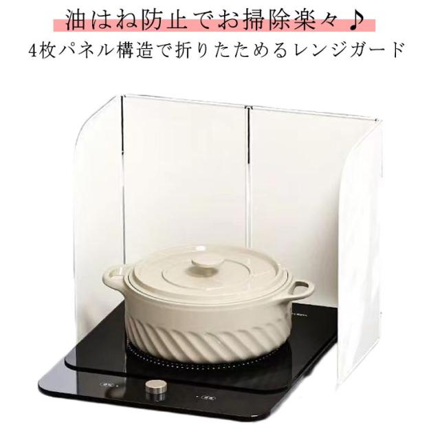 | 油はね防止でお掃除楽々♪ 4枚パネル構造で折りたためるレンジガード どんな置き方もOK!4枚パネル構造でお好みの形で使用できるレンジガード。 コンパクトに畳めて、収納にも困らない!使わない時はスッキリ収納! 角丸加工で、手を傷つけない。厚みがあり、安定感が抜群!簡単に倒れない! つるっと滑らかな表面で、よごれもするりと落ちる。使い終わったら拭き取るか丸洗いすればいつでも清潔をキープ。 高品質で錆びにくく断熱性能も優れています! 安心して料理を楽しめるレンジガードです。 | |