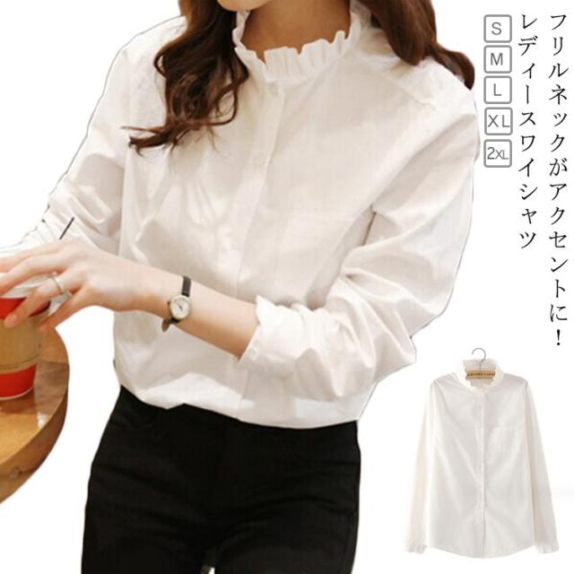 長袖 おしゃれ 通勤 レディース 春コーデ レディース 40代 シャツ 上品 きれいめ トップス フリルネック スーツ ミセス 20代 30代 インナー 大きいサイズ 春夏 長袖 大人可愛い 秋コーデ オフィスカジュアル 無地 シンプル
