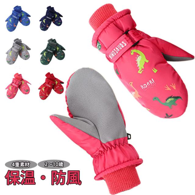 4歳 スノーグローブ 8歳 スノーボード キッズ 3歳 スキー 恐竜 6歳 5歳 キッズ スノーボード 9歳 グローブ 10歳 7歳 雪遊び 男の子 女の子 ミトン 2歳 4重 スキーグローブ 高耐水圧 中綿入り 手袋 てぶくろ 手ぶくろ ジュニア こども用
