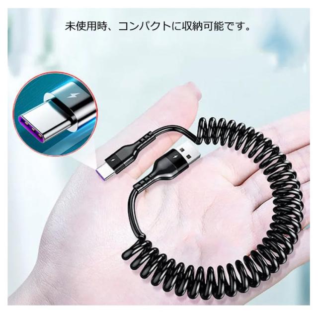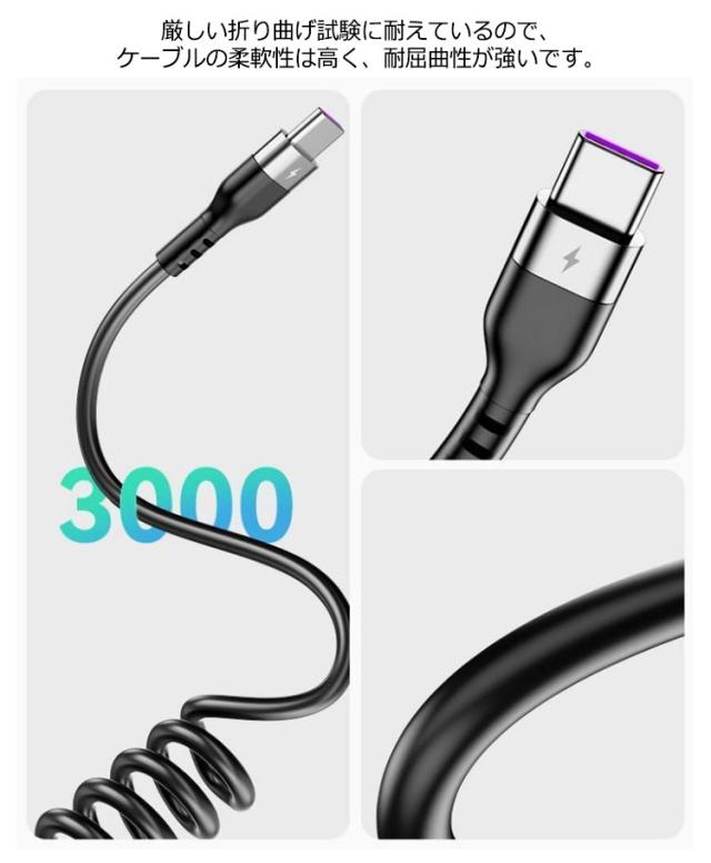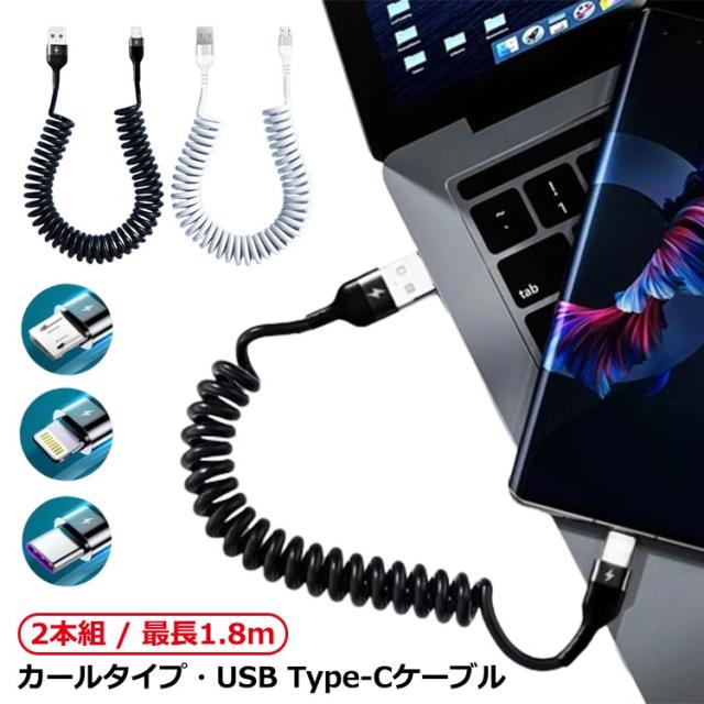 5A ライトニング スマホ 2本組 iPhone ライトニング Type-C バンジー伸縮ケーブル 車載 iPhone 伸び縮み 伸縮1.5m Lightning 急速充電 高速データ転送 高耐久 充電ケーブル 絡みにくい スプリング iPhone iPad iPod 対応