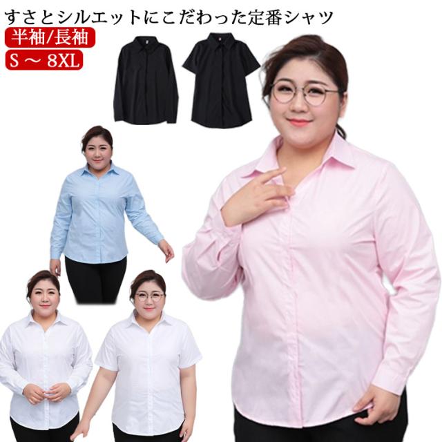 半袖シャツ スーツ 美しく着れる 白 長袖 半袖 白シャツ ゆるシャツ スーツ 黒 ワイシャツ大きいサイズ ブラウス インナー S-8XL ビジネス 事務服 制服 ボタン ゆったり オフィス ぽっちゃりさん OL 会社 通勤 ワイシャツ白 ホワイト