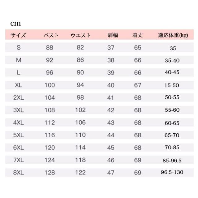 | サイズ | S M L XL 2XL 3XL 4XL 5XL 6XL 7XL 8XL |
