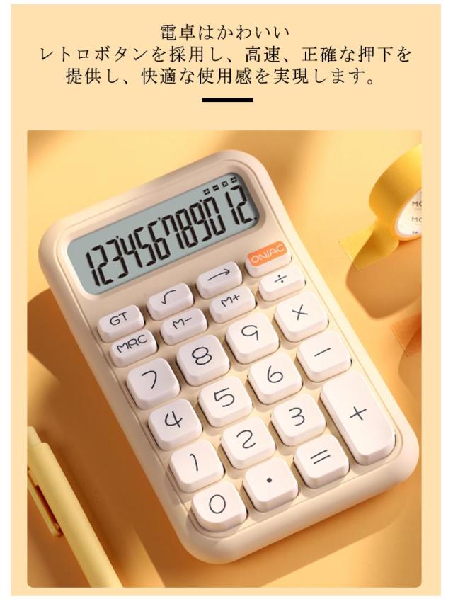 可愛い かわいい 12桁 おしゃれ オシャレ 簿記 電卓 カワイイ お洒落 電卓 レトロ タイプライター 可愛い 押しやすい 持ち運び便利 北欧