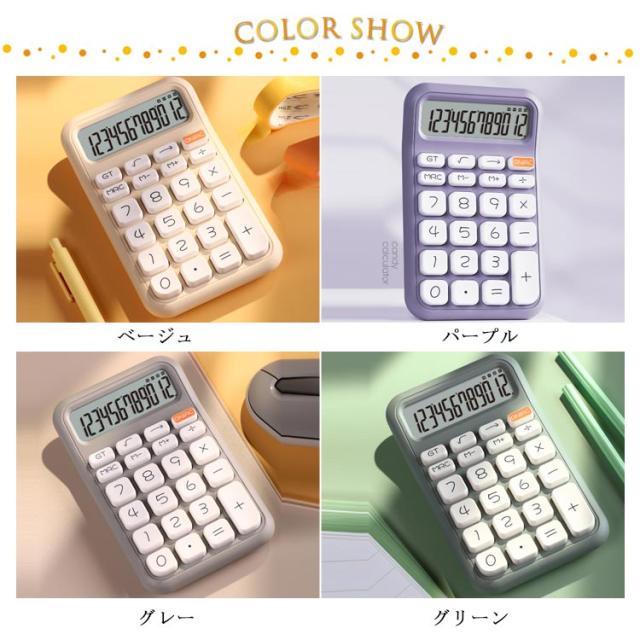| 大きめのキーキャップは手にフィットして疲れにくい。 電卓はかわいいレトロボタンを採用し、高速、正確な押下を提供し、快適な使用感を実現します。 指の触覚的な衝撃や独特の音のクリックがクセになるでしょう。 電卓にはシャープな表示の大型液晶ディスプレイを採用。 デジタル高効率エネルギーコントローラ、単4電池1個(電池は別売りです) 本体にしっかりとした安定性があれば、どんな早打ちでも安心です。 | |