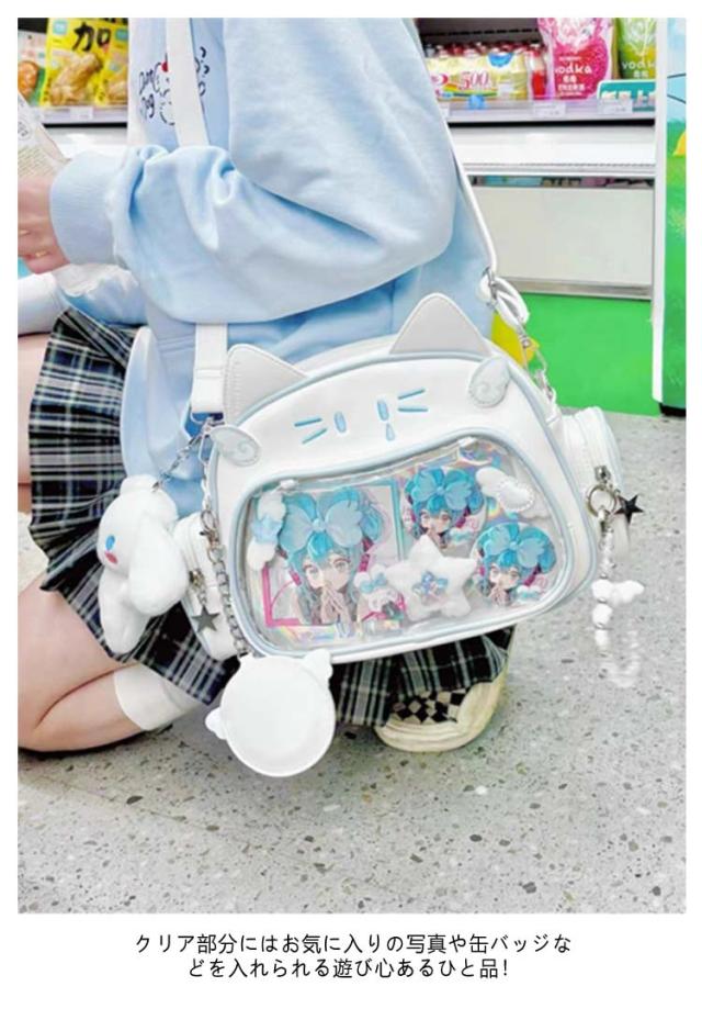 痛バ 痛バッグ 小 トート ショルダー 猫型 ネコ かわいい ショルダーバック トートバッグ 小さめ コンパクト クリアバッグ 推しバッグ 見せバッグ 透明窓 斜め掛け 肩掛け オタクバッグ 缶バッジ 推し活 ライブ イベント用 おしゃれ レディース 【送無】 アクセサリーなし