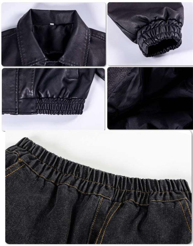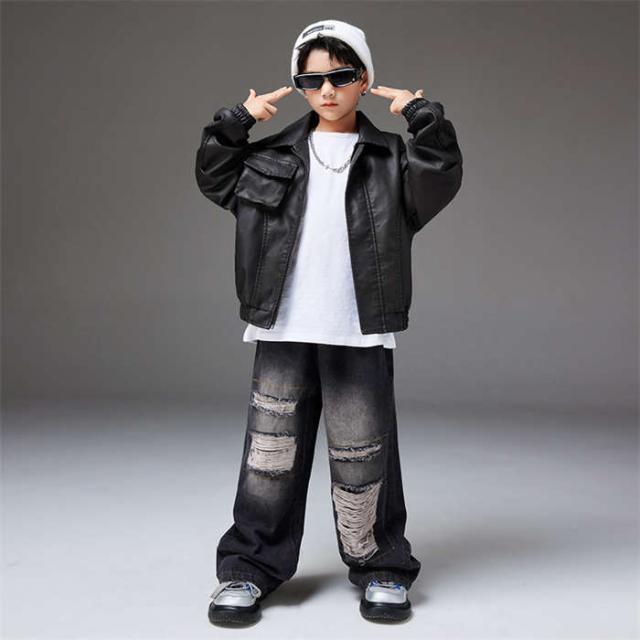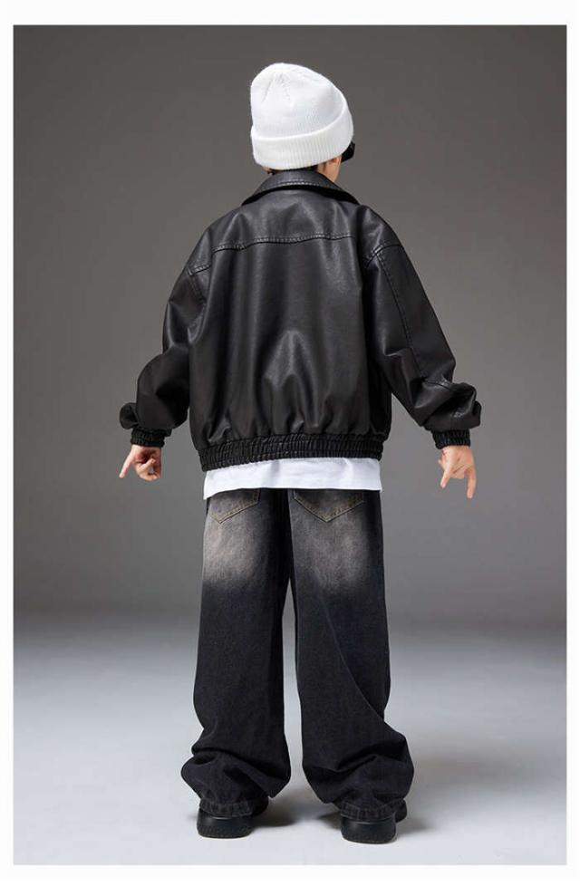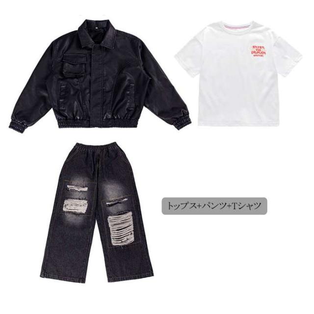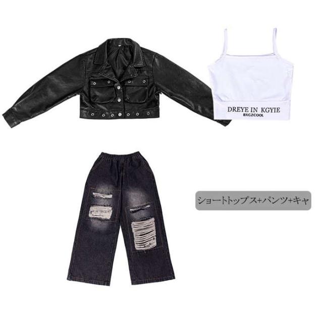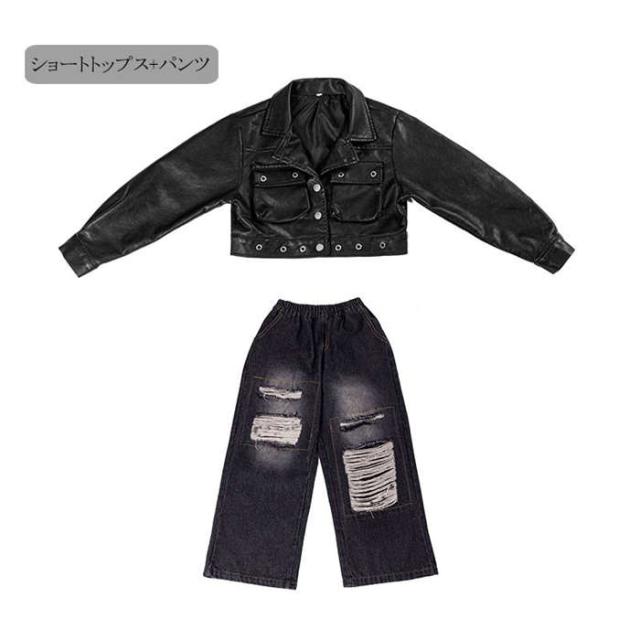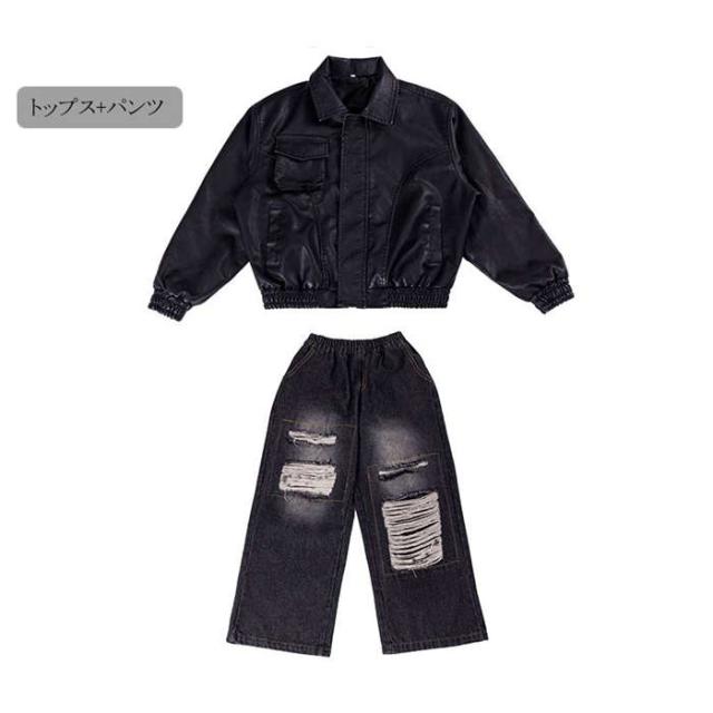 商品名:ダンスウェア ジャケット デニムパンツ キッズダンス衣装 男の子 女の子 ダンスウェア ヒップホップ ジャズダンス ポッピング k-pop 個性派 かっこいい セットアップ パンツ 革 トップス ステージ衣装 子供服 演出服 団体服 応援団 カジュアル 練習着 原宿系 ゆったり120cm 130cm 140cm 150cm 160cm 170cm