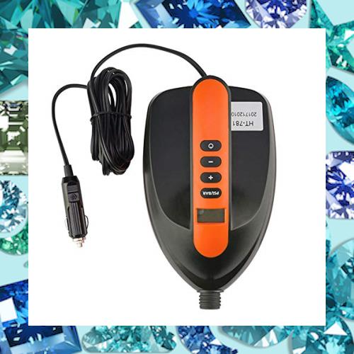 【16 PSI自動停止】DC 12V車用バッテリの給電方式。最大圧力値16PSI,SUP 12~15PSI推奨,パドルボードを膨らませるのに約15分かかります。設定した空気圧まで達すると、自動停止。