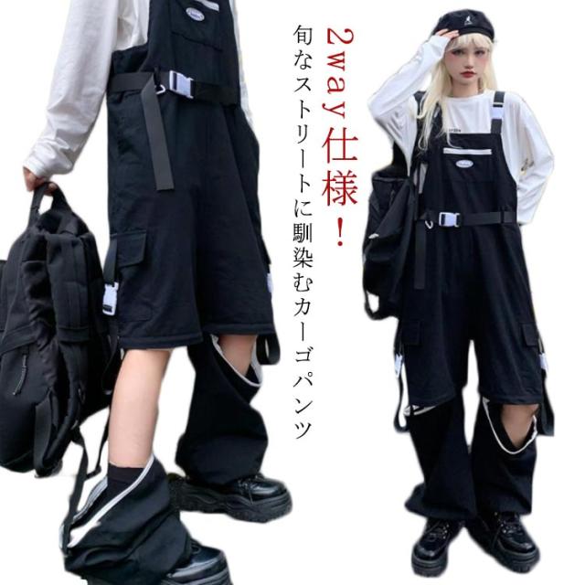 2way カーゴパンツ オーバーオール ジョガーパンツ レディース ボトムス サロペット 長ズボン オールインワン ストリート系 春夏秋冬 ヒップホップ ダンスウェア カジュアル 体型カバー 着?せ イージーパンツ ダンサーパンツ