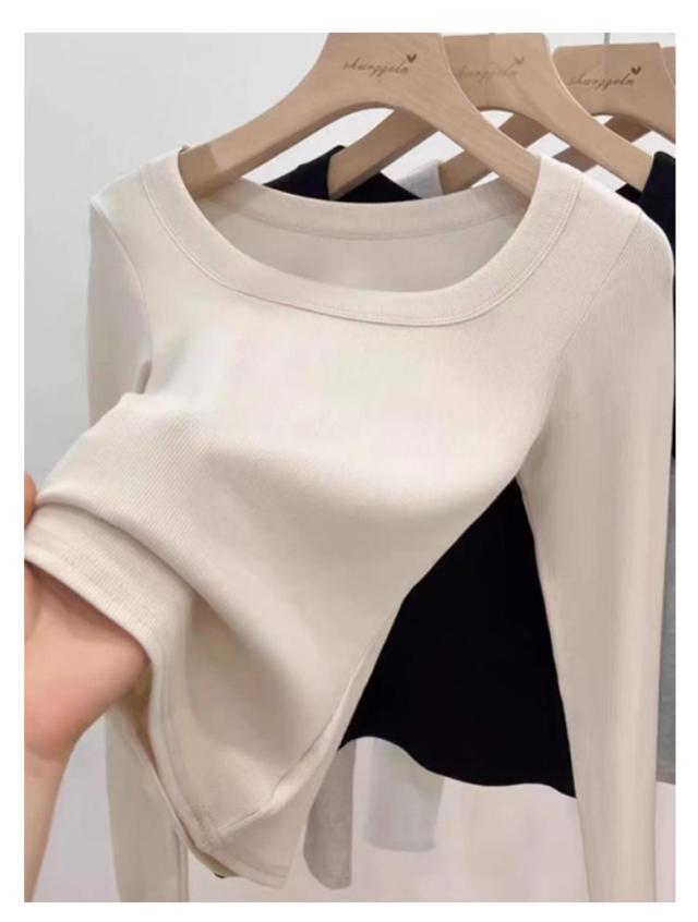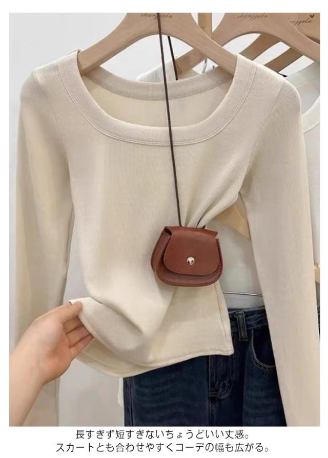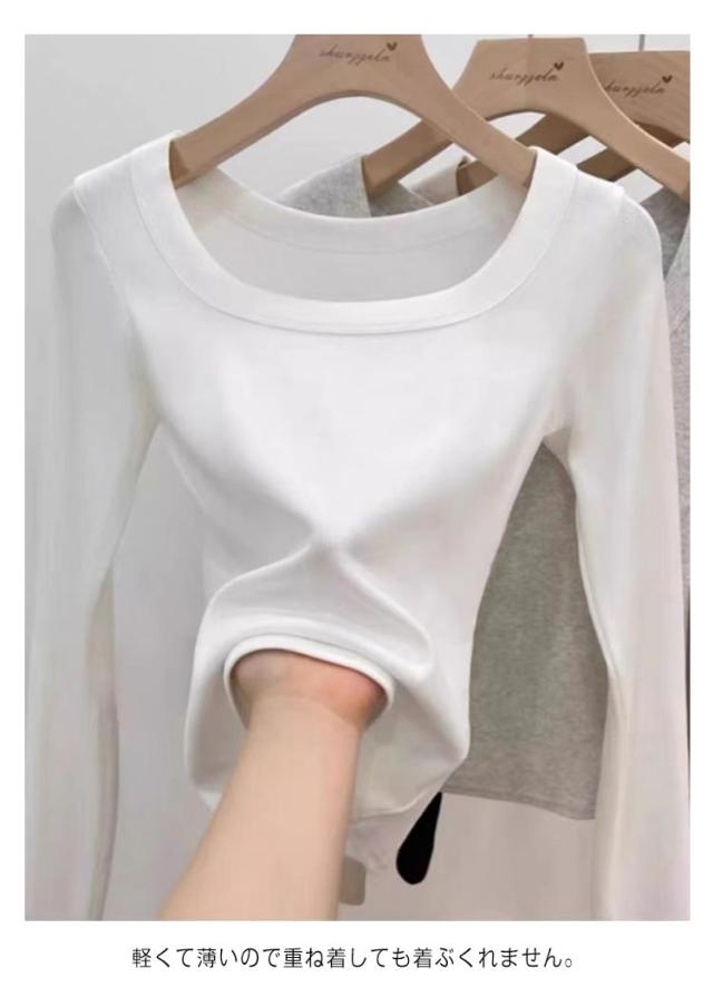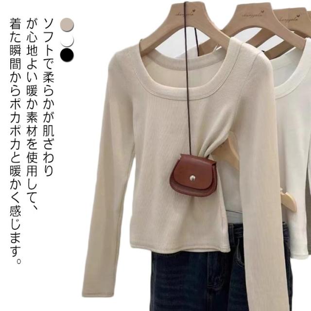 Uネック Tシャツ 長袖 レディース 春 秋 カットソー ルームウエア 無地 女性用 肌着 重ね着 大きいサイズ 着回し 着?せ 保温 あったか フェミニン シンプル 春秋 秋冬