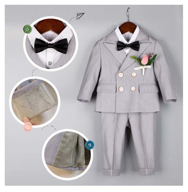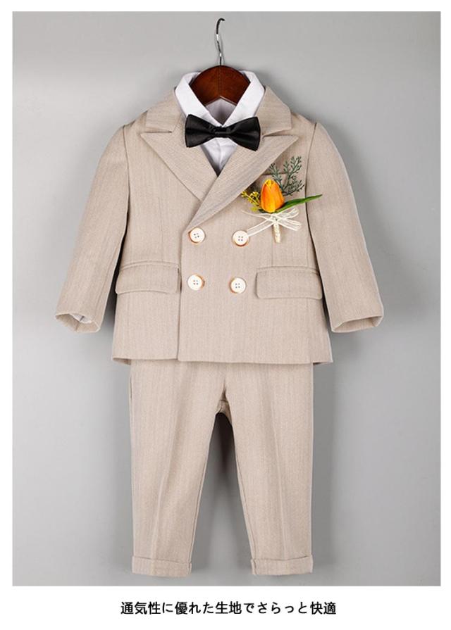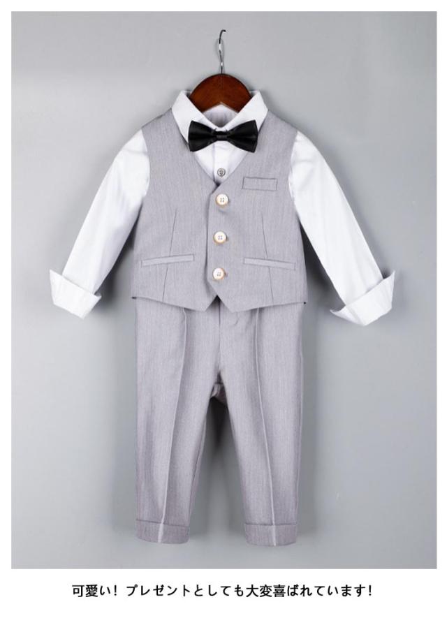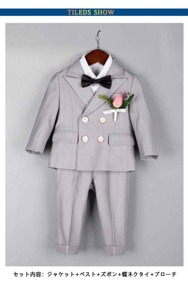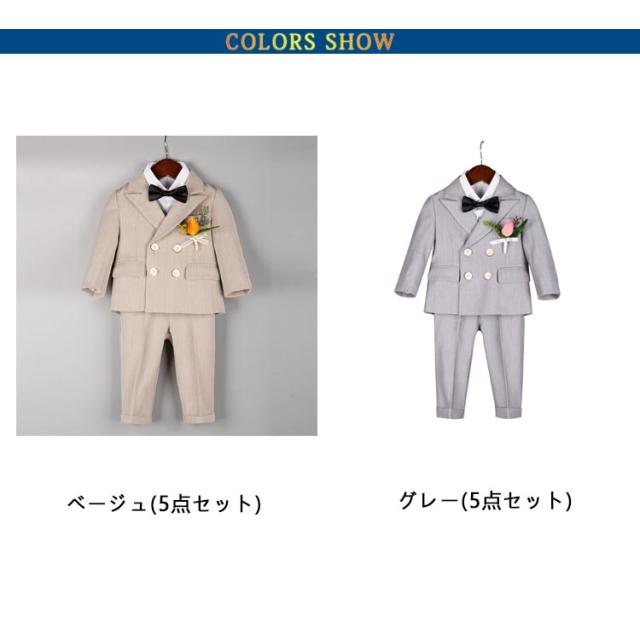 | 【5点セット】【80-150cm】【入園式、卒園式、入学式】【2colors】 セット内容:ジャケット+ベスト+ズボン+蝶ネクタイ+ブローチ 七五三や入園式、卒園式、入学式、ピアノ発表会等の時にぴったり♪ シャツのメイン生地はコットン(綿)になります。着心地がとても良い♪ 可愛い!プレゼントとしても大変喜ばれています! 通気性に優れた生地でさらっと快適 | |