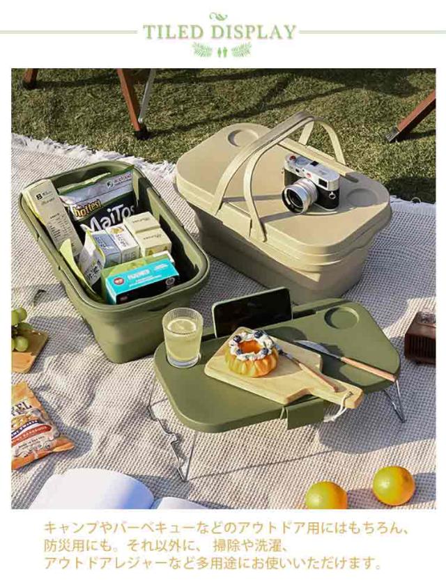 ピクニックバスケット 折りたたみバケツ 洗い桶 蓋付き 大容量 レジャー 蓋付き キャンプ用品 ハンドル付き 洗濯かご アウトドア コンパクト ピクニックテーブル 収納ボックス 折りたたみテーブル シンプル BBQ ハイキング お出かけ バスケット 手提げ設計 送料無料