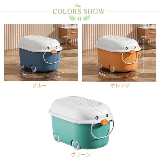 おもちゃ収納 収納ボックス 子ども用 おもちゃ箱 ふた付き キャスター付き 収納ケース 取っ手付き 収納かご 多機能 防塵 雑物 衣類 書類 整理 収納ボックス 小物入れ ぬいぐるみ ペンギン かわいい 男の子 女の子 収納 子供部屋 ブルー オレンジ グリーン 送料無料