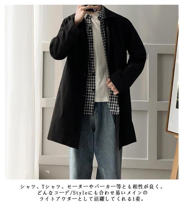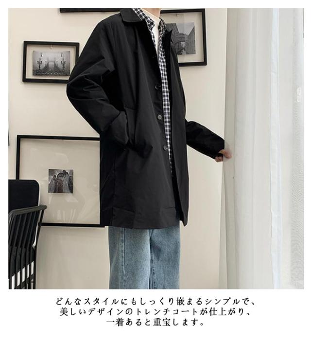 30代 アウター 韓国 春 紳士服 コート ステンカラーコート シンプル 通勤 秋服 大人 スプリングコート メンズ 春服 無地 ビジネス ジャケット 薄手 スプリングコート 40代 50代 バルカラー ミドル丈 膝上 軽量 軽い