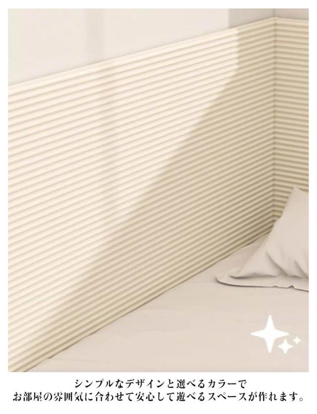 | 貼るだけ簡単なクッション素材で壁にぶつかっても痛くない! 赤ちゃんをケガから守ってくれるウォールクッション。 柔らかな素材なので、衝撃に強く、転倒時の衝撃吸収に抜群の効果あります。 裏面がタイプになっていますので施工も簡単!すぐに使えます! シンプルなデザインと選べるカラーでお部屋の雰囲気に合わせて安心して遊べるスペースが作れます。 | |