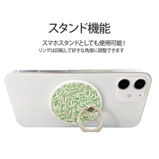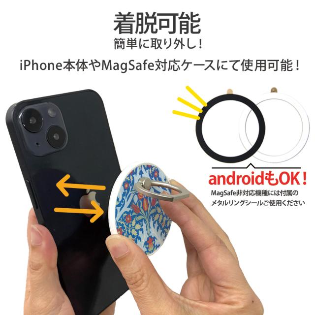 スマホリング MagSafe対応 メタルリング付き 落下防止 片手操作 180度 360度 回転 マグセーフ magsafe デザイン ウィリアムモリス 携帯 リング ホルダー 指 かけ 薄型 マグネット 磁石 フィンガーリング iPhone15リング ウィローボウ チューリップ 薔薇