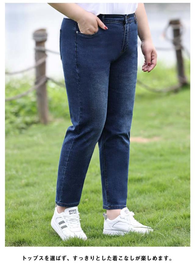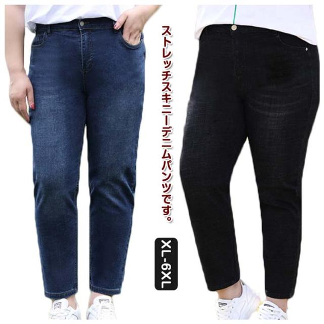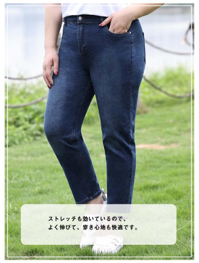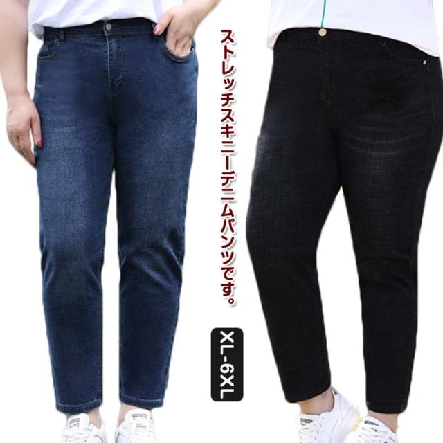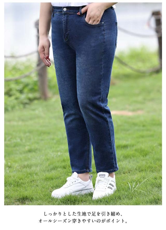 デニム レディース スキニーパンツ 大きいサイズ ストレッチ ボトム パンツ ジーパン ジーンズ ストレートシルエット ハイウェスト スリム 細身 おしゃれ きれいめ すっきり 見せ ロング丈 ぽっちゃり 体型カバー 大人 オールシーズン