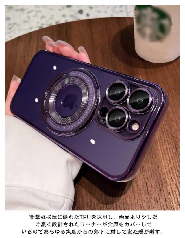 | 【MagSafe対応】【リング付き&スタンド機能】【全5色】 マグネットを搭載し、一瞬でピッタリと高速充電を実現!安定性を持ち、充電器を近づけると高速ワイヤレス充電が実現です。 リング付き。リングを引き上げて指を通せば落下防止になり、片手でも安定した操作が可能に。スタンド機能があるとドラマ、動画を見るのがとても便利、両手解放可能。 衝撃吸収性に優れたTPUを採用し、画面より少しだけ高く設計されたコーナーが全周をカバーしているのであらゆる角度からの落下に対して安心感が増す。 レンズにはカバーが付属なので、有効的にレンズの摩損を防止します。 防塵ネット設計で、携帯電話のスピーカーにほこりが入らないようにしています。 【スタイリッシュな外観】ケースに光沢のある金属の質感が与えられ、より魅力的になります。 | |
