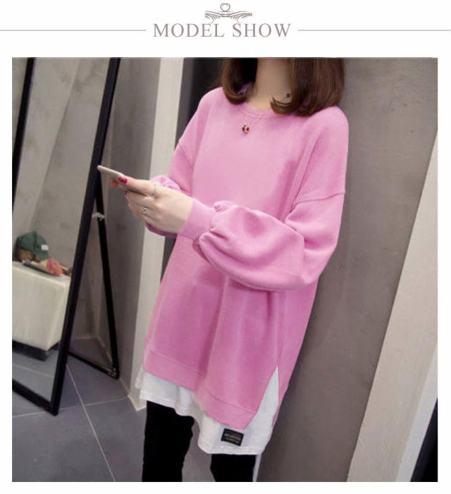 秋 春 ロング丈 レイヤード風 長袖 Tシャツ ロングT 秋冬 重ね着風 3XL 秋服 インナー ラウンドネック 冬 春秋 レディース 春服 トップス ゆったり カジュアル レイヤード風 M L XL 2XL 4XL 大きいサイズ ブラック ピンク ダークブルー オレンジ
