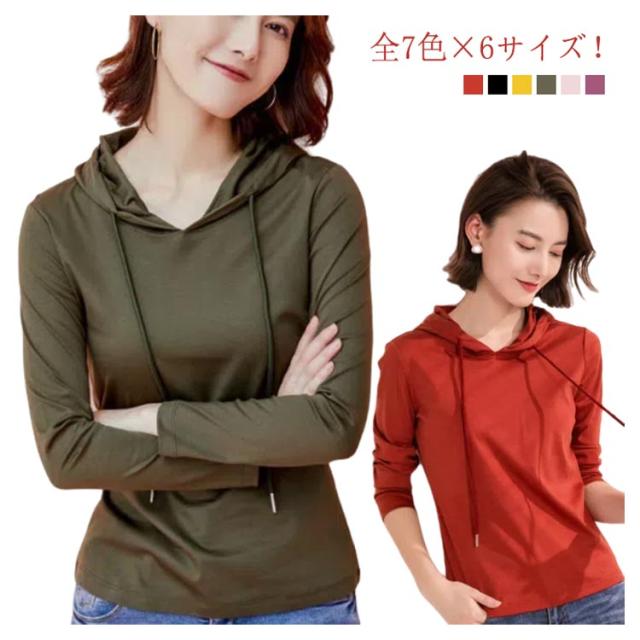 レディース フード付き 春 パーカー 薄手 プルオーバー 送料無料 レディース 薄手 ニットソー 無地 パーカー パーカー レディース tシャツ フード付きtシャツ 長袖 シンプル 夏 大きサイズ カジュアル 春 春 秋