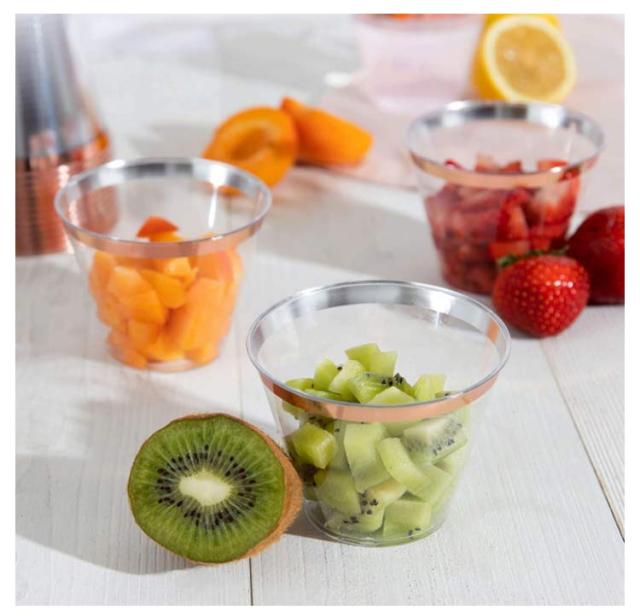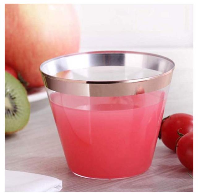 | 9オンス容量:これらのプラスチックカップは、9オンス(約266 ml)の容量を持っています。この中程度の容量は、さまざまな飲み物やデザートを提供するのに適しています。 透明なデザイン:カップは透明なプラスチックで作られており、飲み物やデザートの見た目を美しく見せます。ゲストが中身を簡単に見ることができます。 使い捨て:これらのカップは使い捨て用途に適しています。パーティーや集まり、ピクニック、バーベキュー、カフェ、レストラン、アウトドアイベントなどで便利に使用できます。 ハードプラスチック:プラスチックはハードで耐久性があり、安定感があります。飲み物やデザートをしっかりとサポートし、漏れにくい設計です。 | |