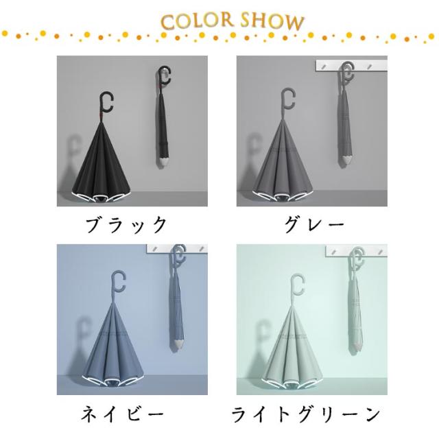 | UPF50+ 晴雨兼用 逆さ傘 持ち運びやすい ?布2層構造 晴雨兼用 反射テープ付き | |